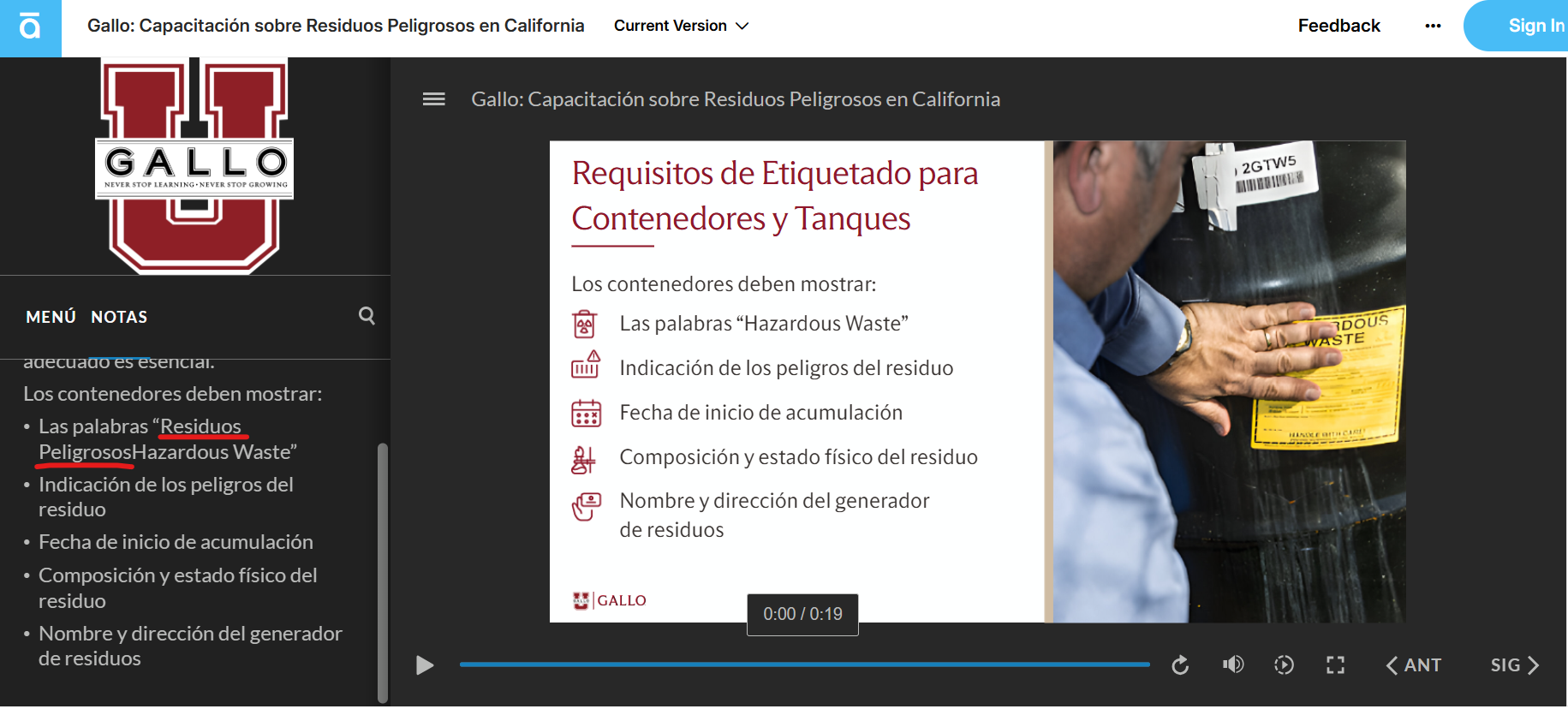 closedGallo: California Hazardous Waste | Spanish - Requisitos de Etiquetado para Contenedores y Tanques