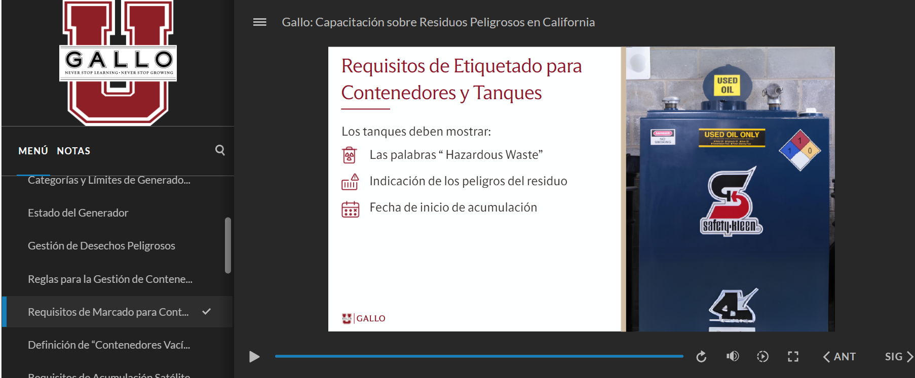 closedGallo: California Hazardous Waste | Spanish - Requisitos de Etiquetado para Contenedores y Tanques